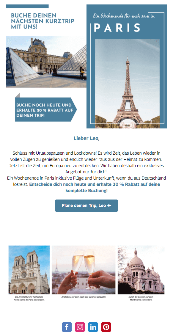 - Plane deinen Trip, {Männlicher Vorname} ✈ (Personalisierung des CTA)