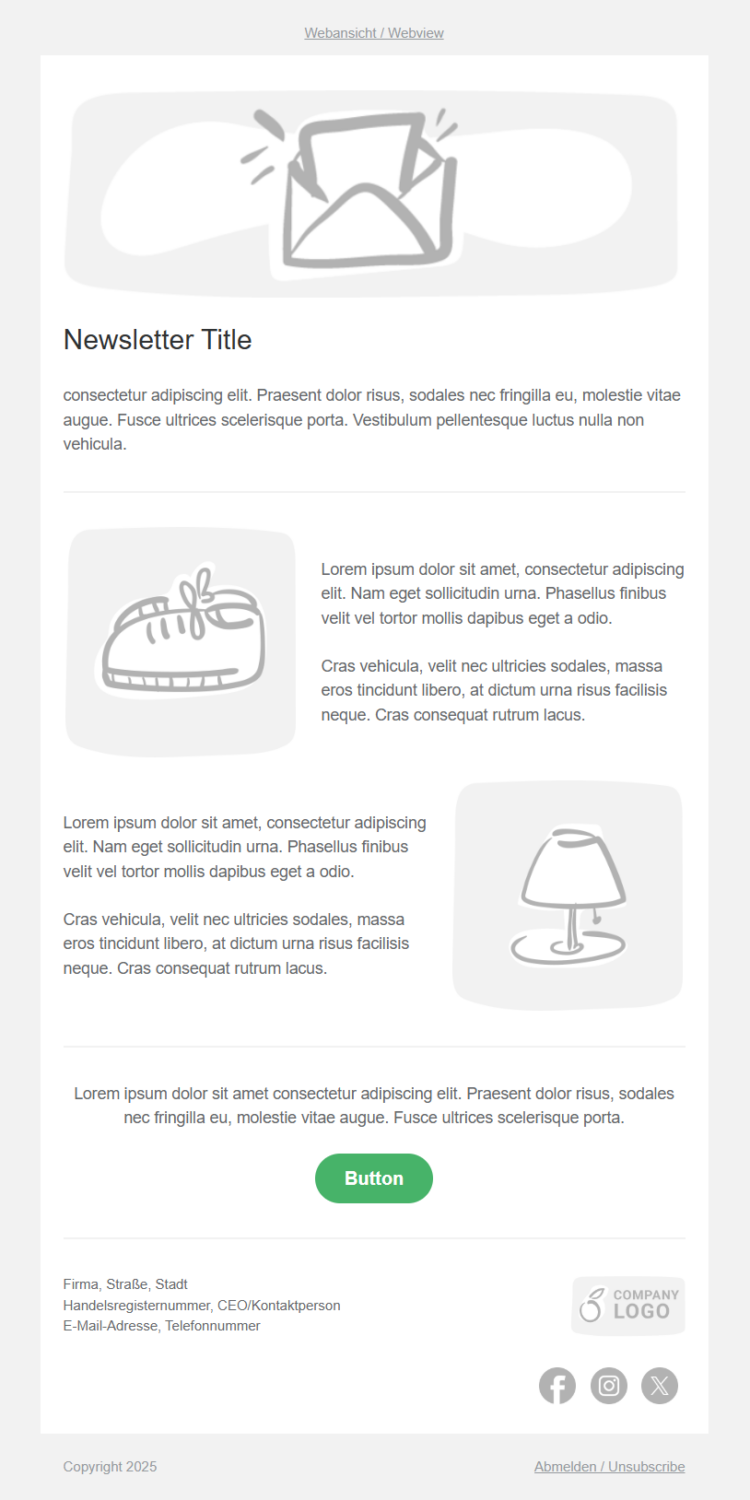 Alle Bilder, Texte und CTA-Buttons aus unseren Newsletter-Templates können Sie bei Bedarf natürlich anpassen und durch eigene Inhalte ersetzen!