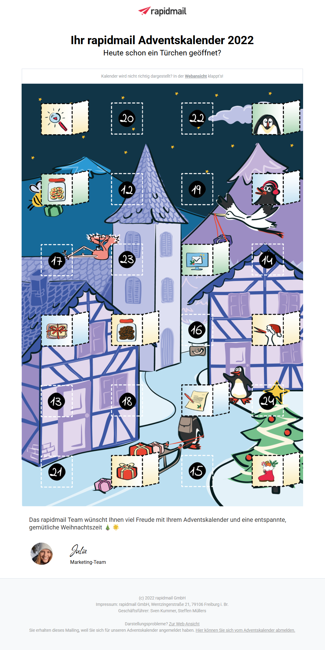 - 💨 schnelle Ladezeiten, indem Sie die Dateigröße Ihrer E-Mails im Blick behalten – so können Ihre Kontakte die täglichen Türchen überall stressfrei öffnen.