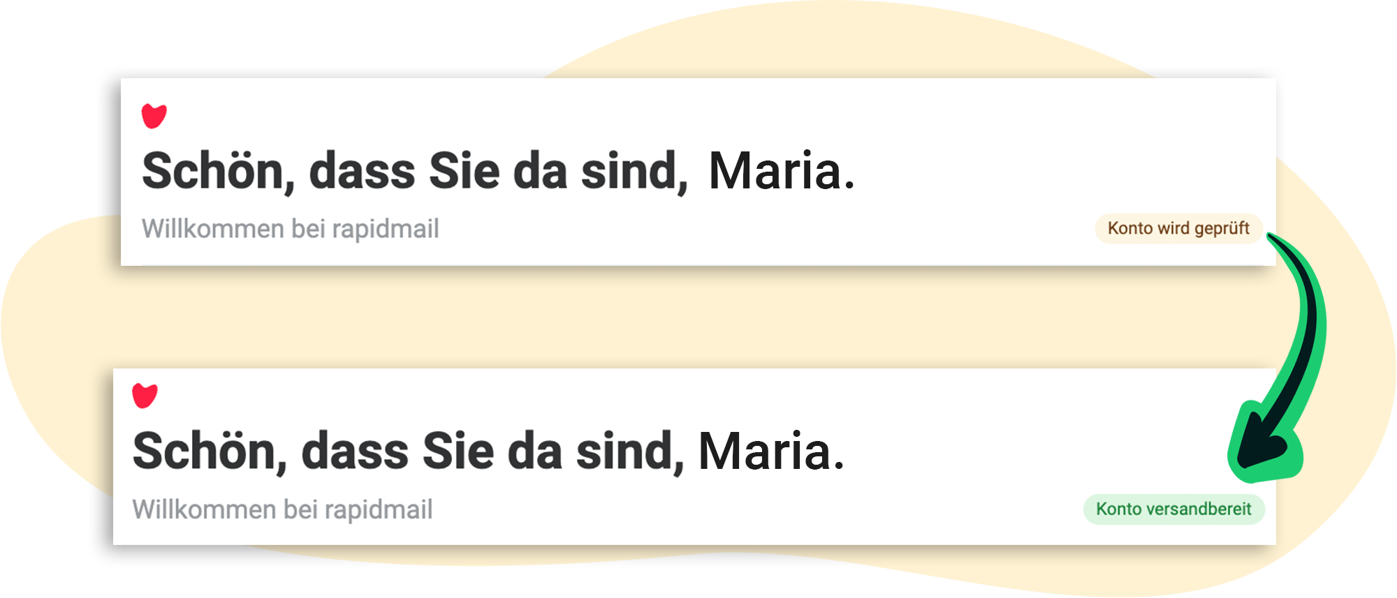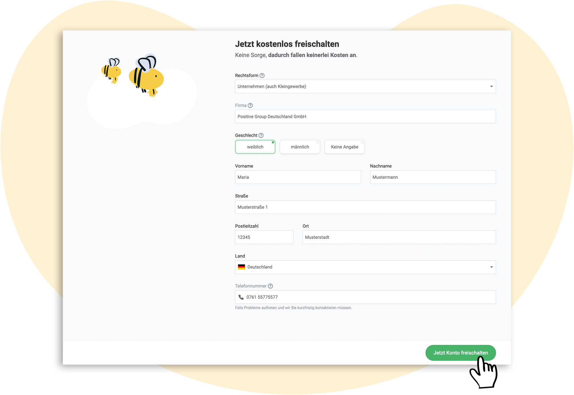 Unser Support-Team prüft zur Freischaltung Ihre Anmeldedaten. Das hat den einfachen Grund, dass wir Spam-Versender:innen von vornherein ausschließen möchten. Der Freischaltungsprozess dauert in der Regel nur wenige Minuten und ist völlig unverbindlich – Ihnen entstehen keine Kosten.