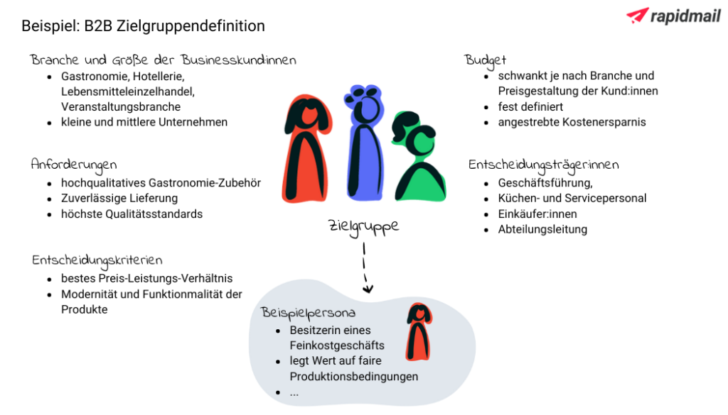 Wenn Sie beispielsweise Zubehör für die Gastronomie herstellen und vertreiben, könnte Ihre Zielgruppendefinition vereinfacht so aussehen: