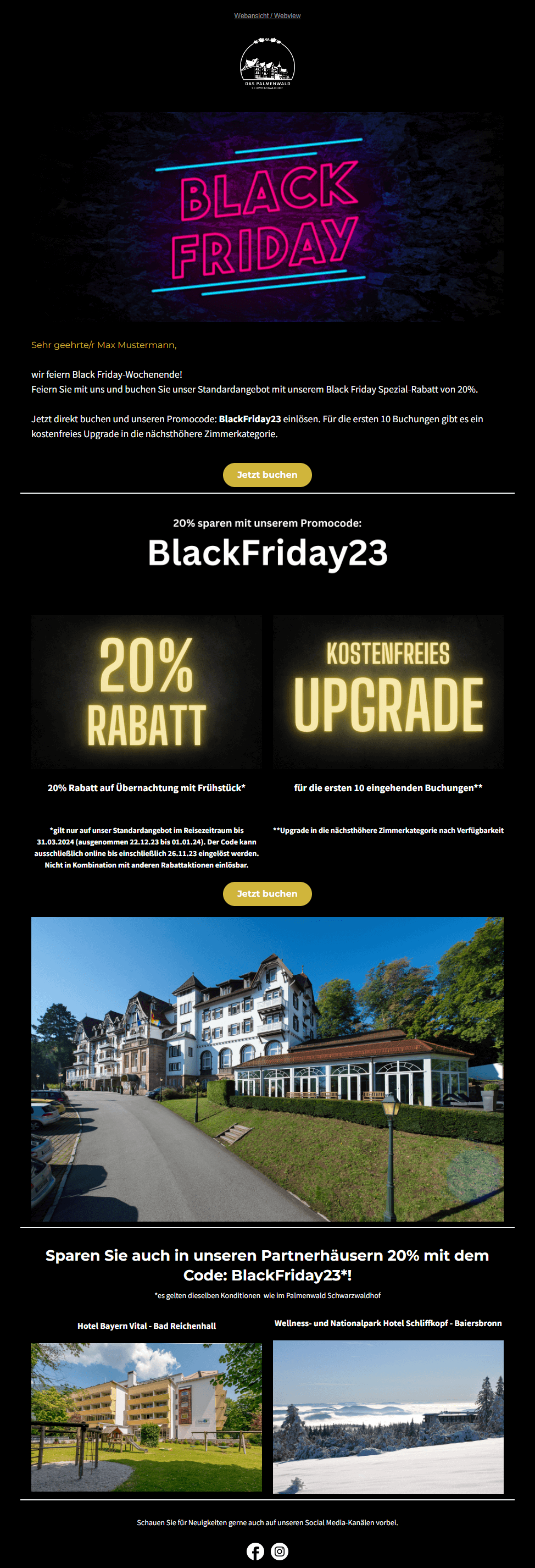 Gerade wenn Sie einen Onlineshop betreiben, sollten Sie sich den Black Friday am 27. November und den Cyber Monday am 30. November rot in Ihrem Newsletter-Redaktionsplan markieren und Ihren Kund:innen interessante Angebote präsentieren.