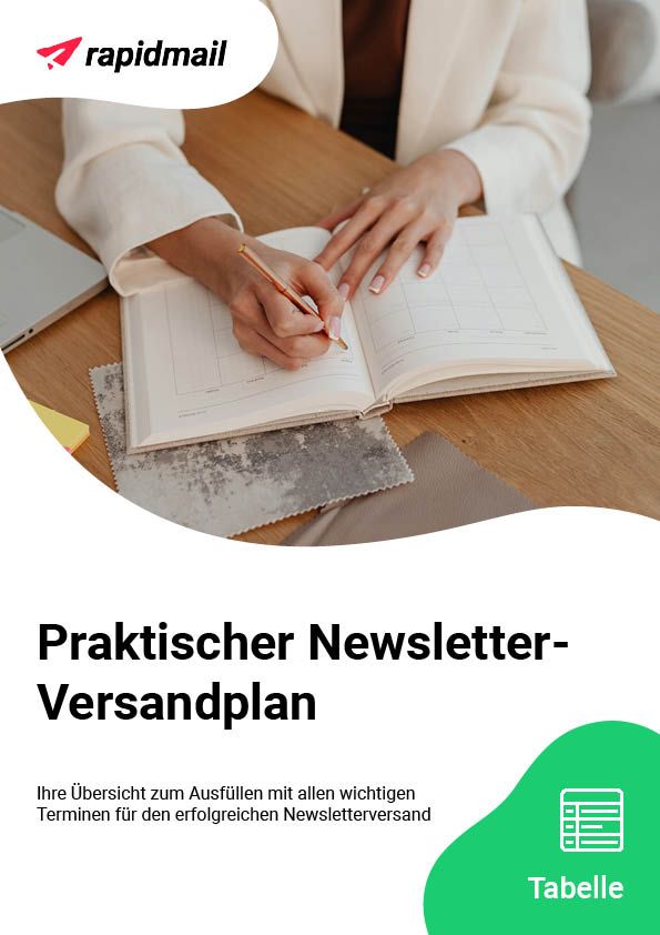 Hört sich erstmal kompliziert an, ist es aber nicht! Damit Sie nicht viel Zeit investieren müssen, stellen wir Ihnen unseren Newsletter-Plan als Template kostenlos zur Verfügung, den wir auch bei rapidmail für unseren Mailingversand nutzen. Der praktische Newsletter-Versandplan enthält bereits alle wichtigen Termine und Themen für das Jahr 2026 sowie weitere hilfreiche Spalten für die Planung und Auswertung Ihrer Mailings. So können Sie unsere Vorlage für Ihre Planung verwenden und damit den idealen Newsletter-Versandplan für Ihr Unternehmen und Ihre Zielgruppe kreieren. ✨