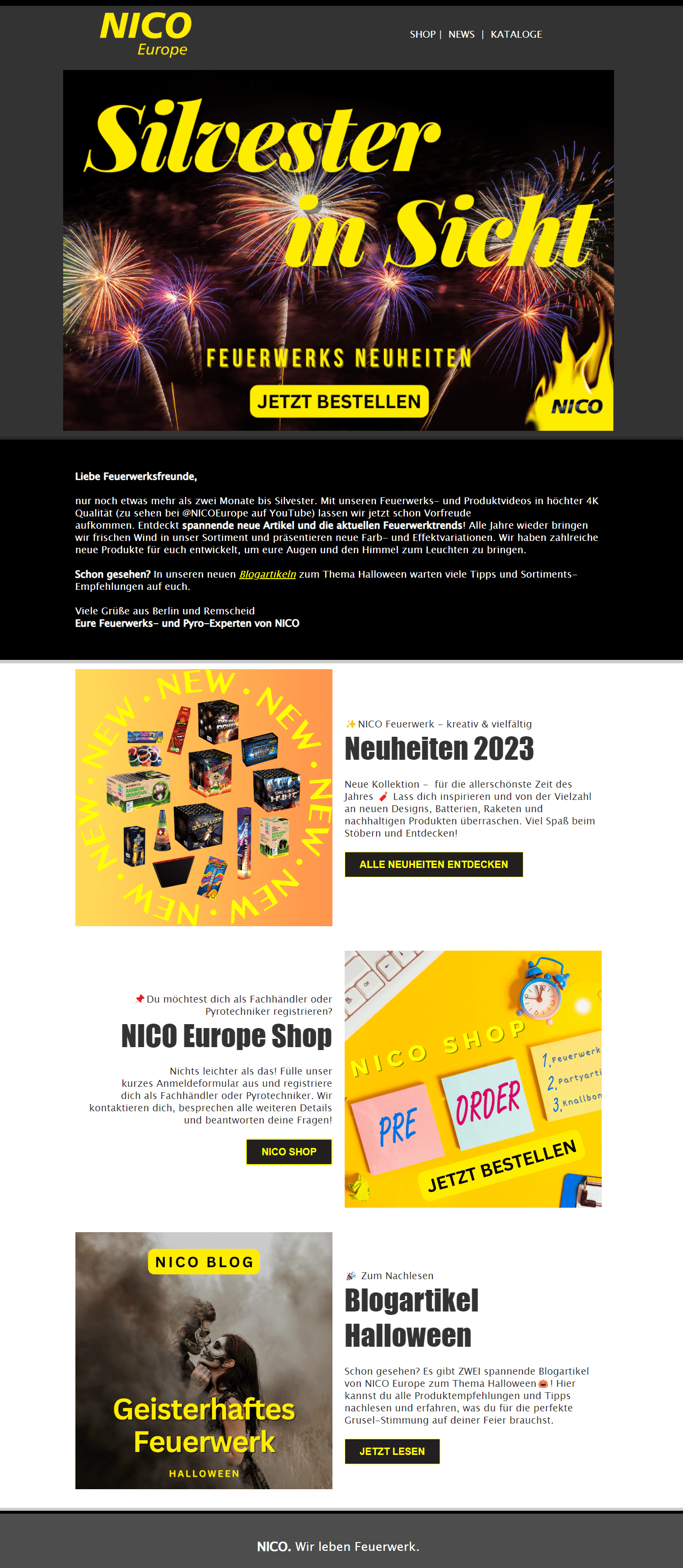 Mit großem Feuerwerk, Konfetti und einem Proooost wird das vergangene Jahr am 31. Dezember würdevoll verabschiedet und ein neues eröffnet. 🎆 Erinnern Sie sich gemeinsam mit Ihren Empfänger:innen in einem Newsletter zu Neujahr daran, welche Herausforderungen Sie in den vergangenen Monaten gemeistert haben und teilen Sie ihnen mit, welche Ziele Sie sich für 2027 gesetzt haben.