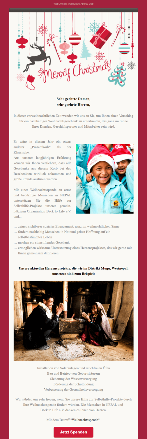 | „Wohltäter“-Typ | – strebt nach Anerkennung seiner guten Taten– erfreut sich am Geben | – interaktiver Newsletter, den er z. B. teilen kann oder auf den er reagieren kann– Dank für die Unterstützung |