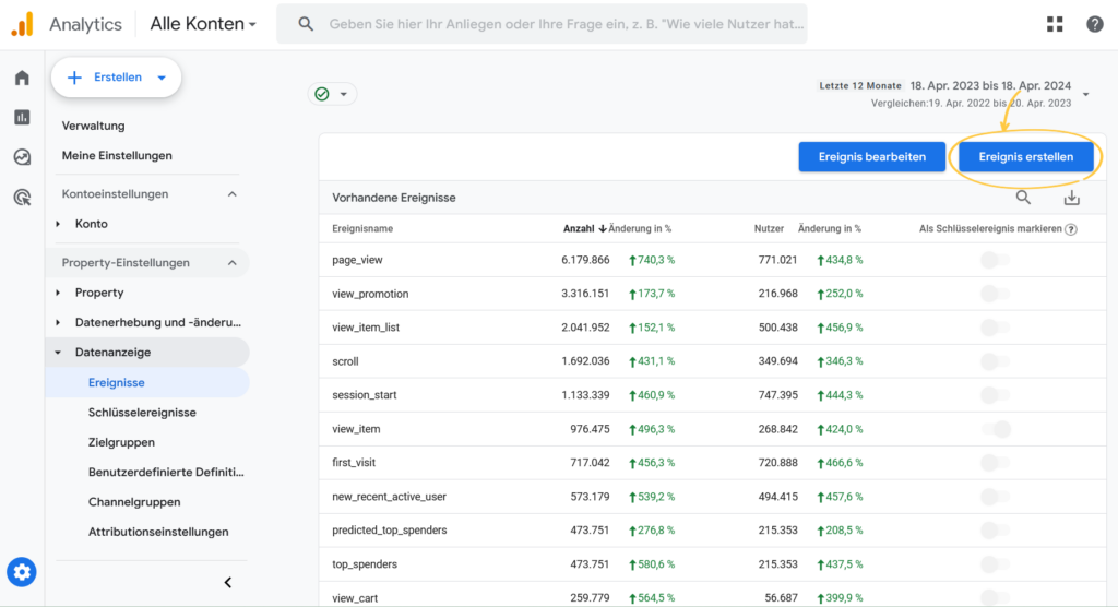 Schritt 2: Gewünschte Conversion-Ereignisse in Google Analytics 4 anlegen